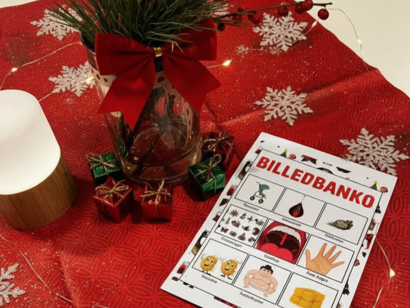 Vi dækker op med æbleskiver og kaffe, som man kan hygge sig med i pausen. Der vil også være en lille julequiz i løbet af aftenen, Det skal nok blive festligt, og hvad er julen uden bankospil?l
