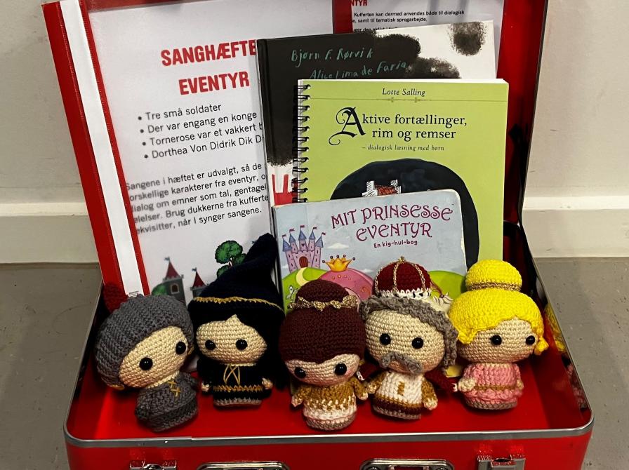 Bliv inspireret til dialogisk læsning og leg med en sprogkuffert, hvor vi har sammensat materialer til sprogstimulerende sang og leg, som I sammen kan gå på opdagelse i